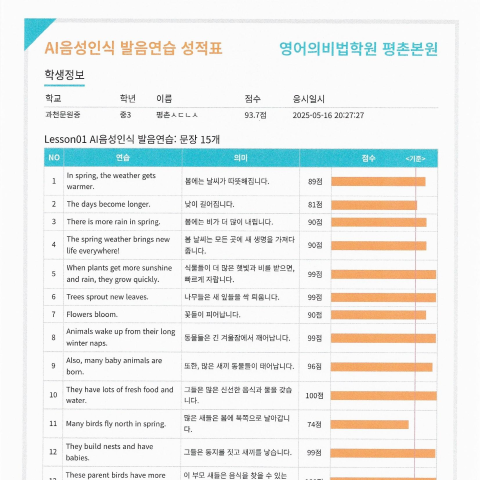 학생의 수준을 분석하고, 이를 바탕으로 다음 학기의 학습계획을 설정합니다.