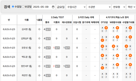 Daily TEST와 과제 미완료 학생을 위한 체계적인 추가 학습 시스템
